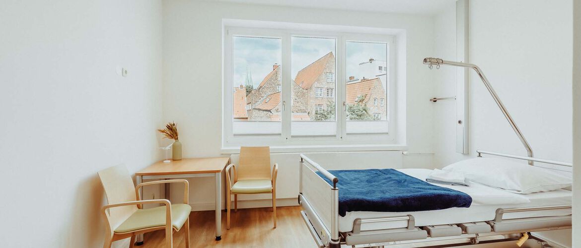 Auf einer komplett renovierten ca. 400 qm großen Fläche erwartet Sie ein ein helles und freundliches Ambiente. Aus unseren Patientenzimmern haben Sie einen wunderschönen Blick auf den Garten mit seinen großen Bäumen sowie den Lübecker Dom oder die Giebelhäuser der Kapitelstraße